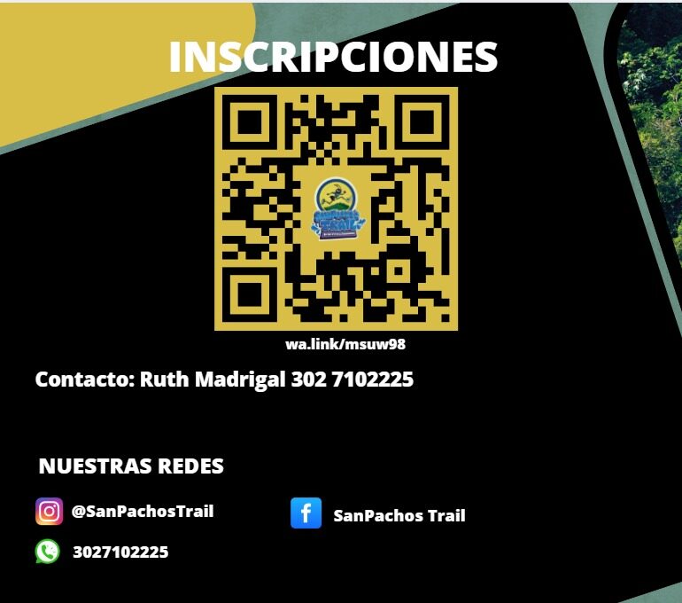 « Todos los Eventos Este evento ha pasado. San Pacho’s Trail julio 13, 2025 « Cristo Rey – Virgen De Yanaconas Trail Running Nuestra Tierra » Add to calendar Google Calendar iCalendar Outlook 365 Outlook Live Details Date: julio 13, 2025 Event Category: Trail Website: https://docs.google.com/forms/d/e/1FAIpQLSdW2F2HLI1NqdoCAnvQJfKYUCSsYFoZg9ycPXrJOHzr_ekQPw/viewform Venue San Francisco Antioquia Organizer Mayor información Phone: 3027102225 Other Instagram https://www.instagram.com/sanpachostrail/ Related Events Montañero Trail By MM café abril 19 Las Juntas Run abril 26 Neusa Trail abril 26 Deja una respuesta Cancelar la respuestaComentarioIntroduce tu nombre o nombre de usuario para comentar Introduce tu dirección de correo electrónico para comentar Introduce la URL de tu web (opcional) Guarda mi nombre, correo electrónico y web en este navegador para la próxima vez que comente. Deja una respuesta Cancelar la respuestaComentarioIntroduce tu nombre o nombre de usuario para comentar Introduce tu dirección de correo electrónico para comentar Introduce la URL de tu web (opcional) Guarda mi nombre, correo electrónico y web en este navegador para la próxima vez que comente.